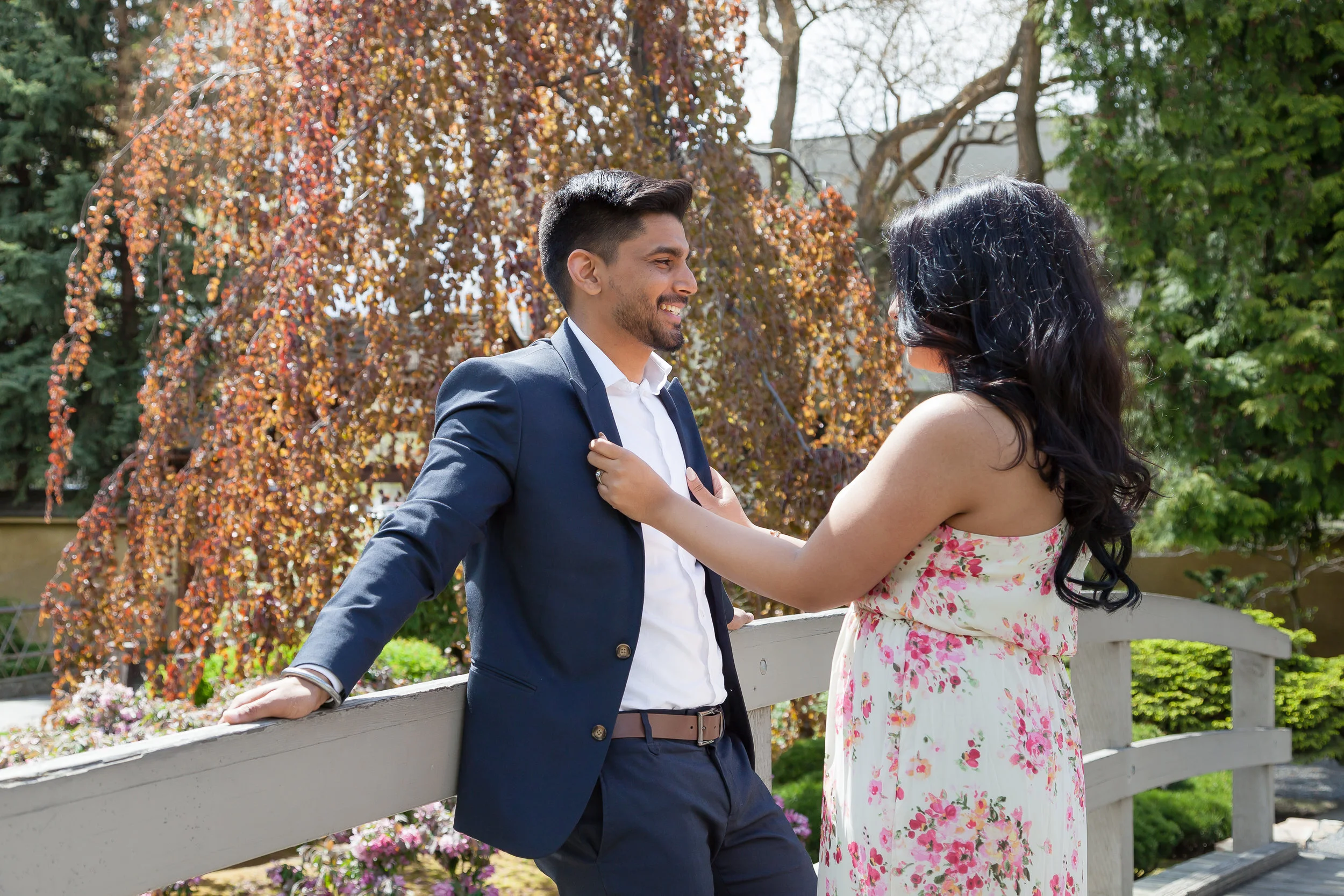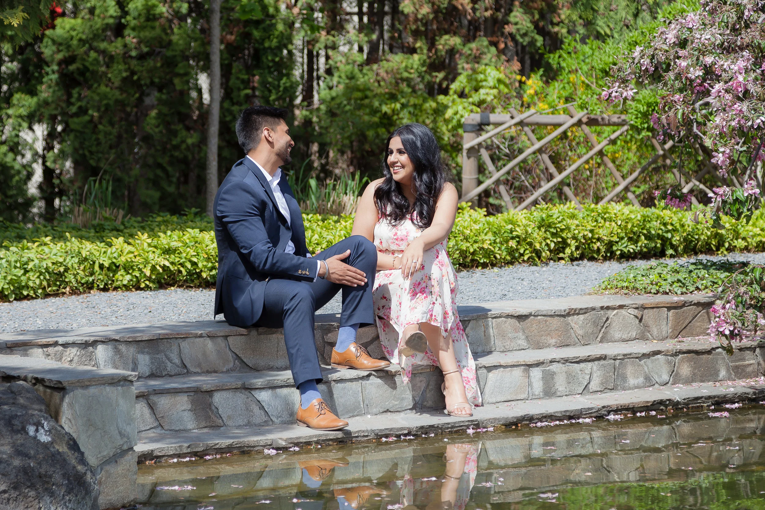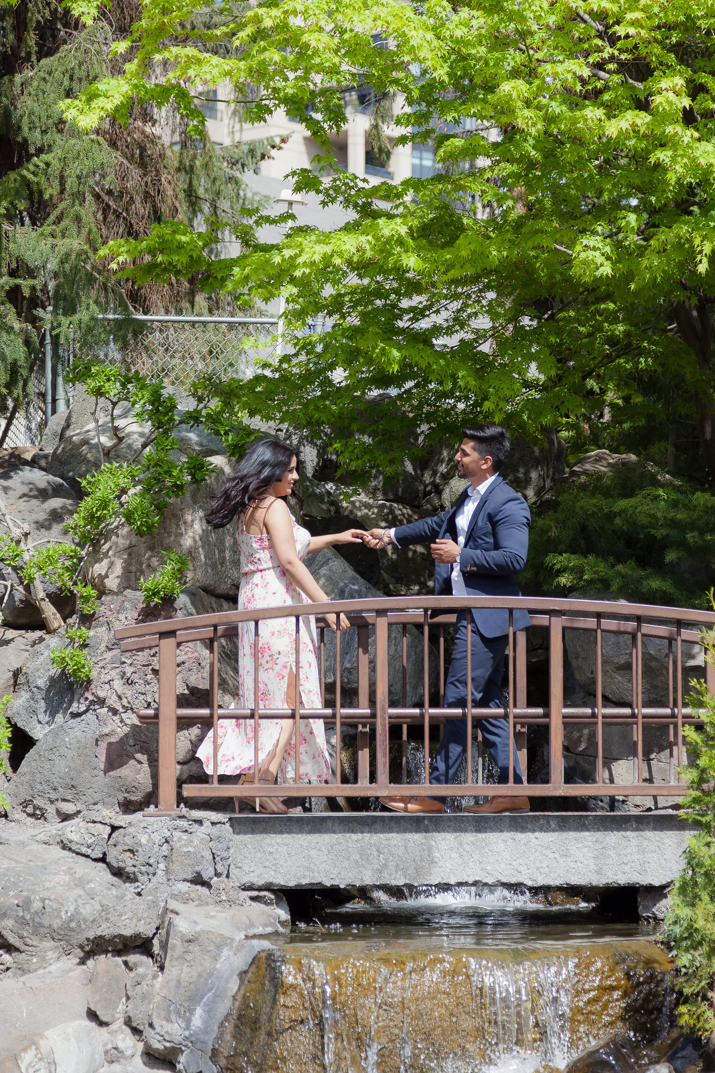 This engagement session couldn't have gone any better. I had the most perfect couple to work with, and the weather turned out to be ideal! We started our day with a modern flare down at the Kasugai Japanese Garden. Tucked away in downtown Kelowna, it was the perfect backdrop for the fresh spring look Dalraj and Jaz were aiming for.